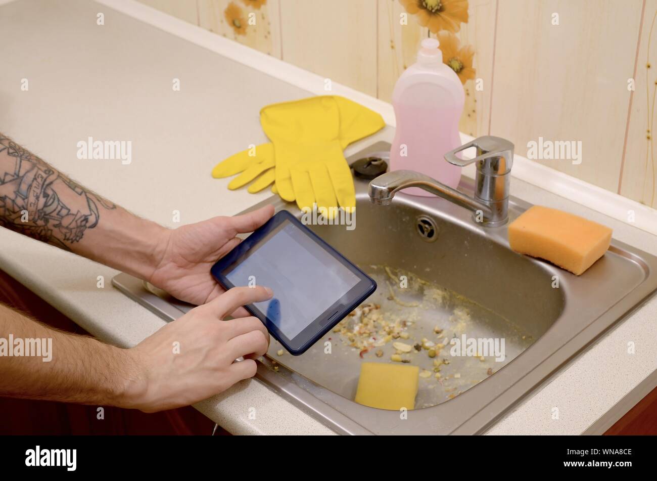 The Landlord Uses The Tablet To Call A Cleaner In Order To Clean The Clogged Kitchen Sink Stock Image Image Of Home Leisure 158081841 from thumbs.dreamstime.com Check spelling or type a new query. We did not find results for: Maybe you would like to learn more about one of these?